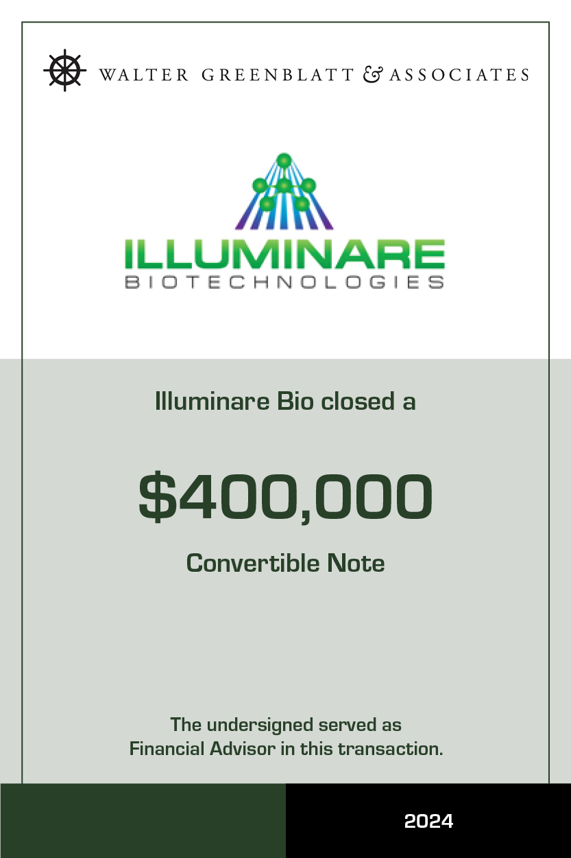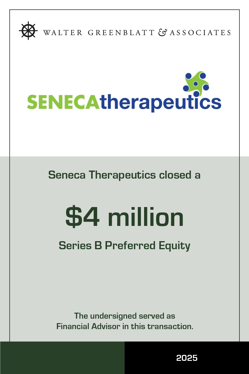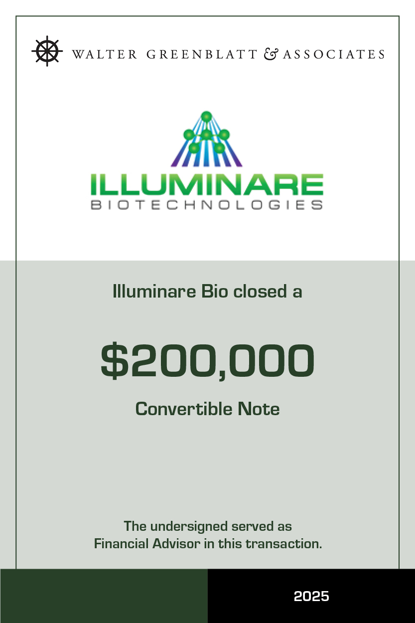 WALTER GREENBLATT & ASSOCIATES enables companies to raise the early stage capital to demonstrate and build clinical and commercial traction