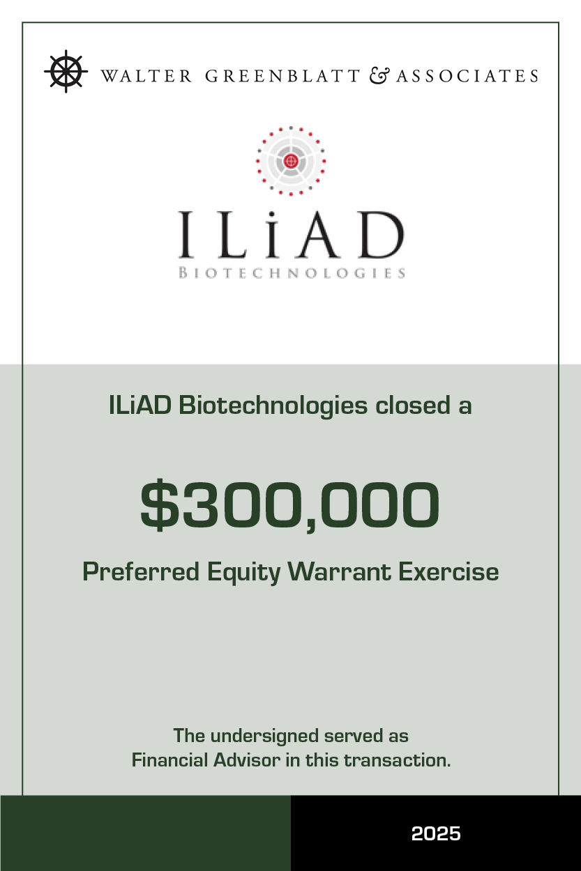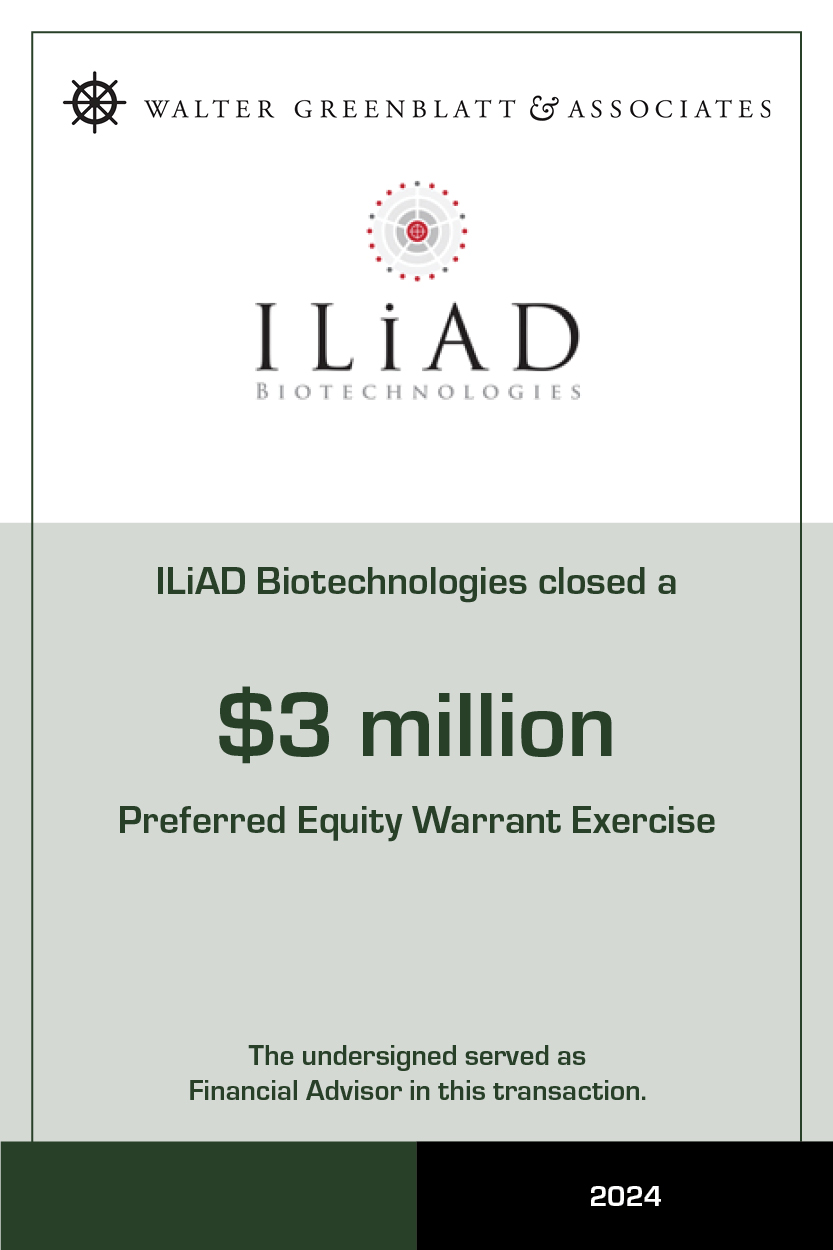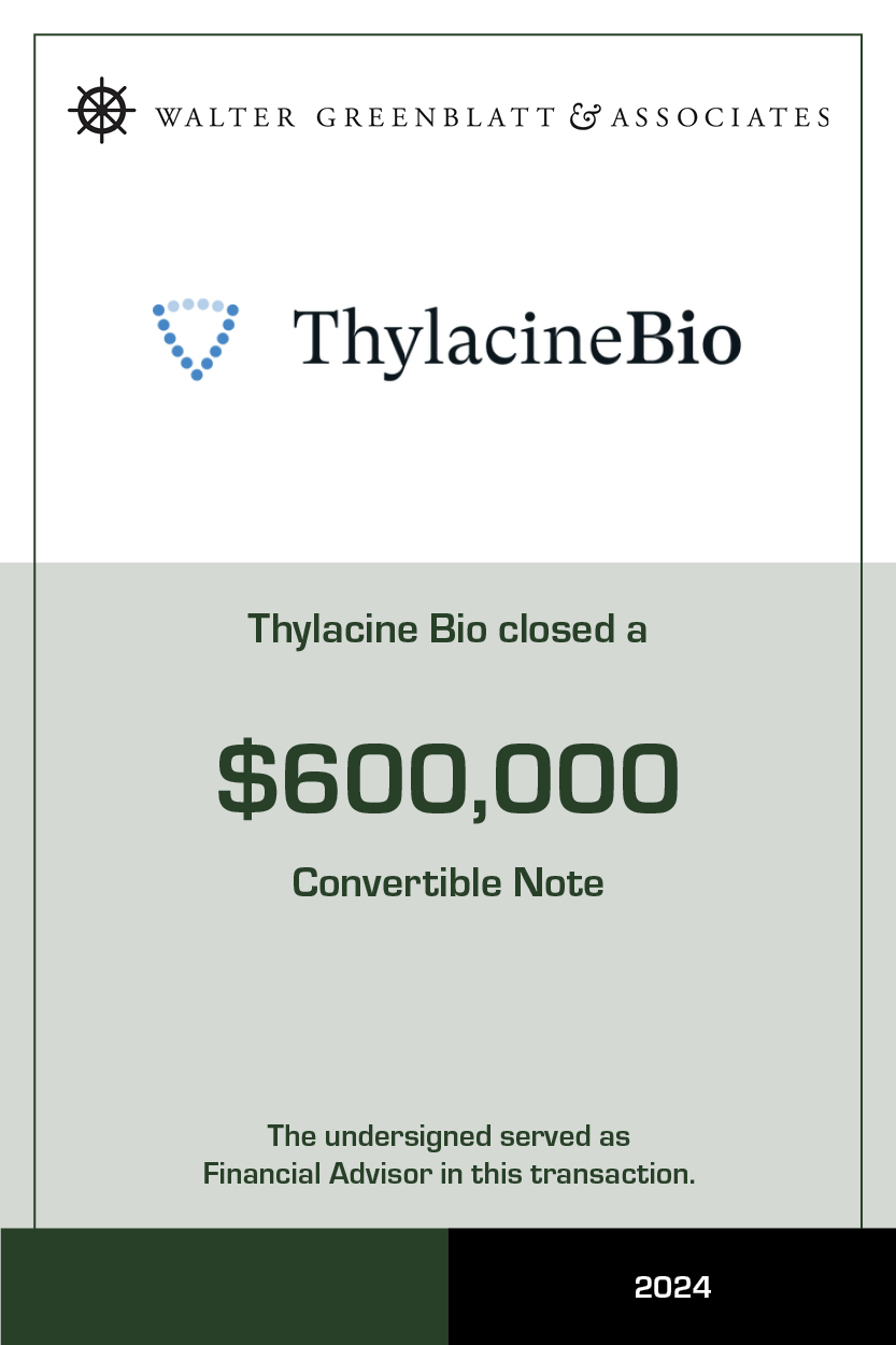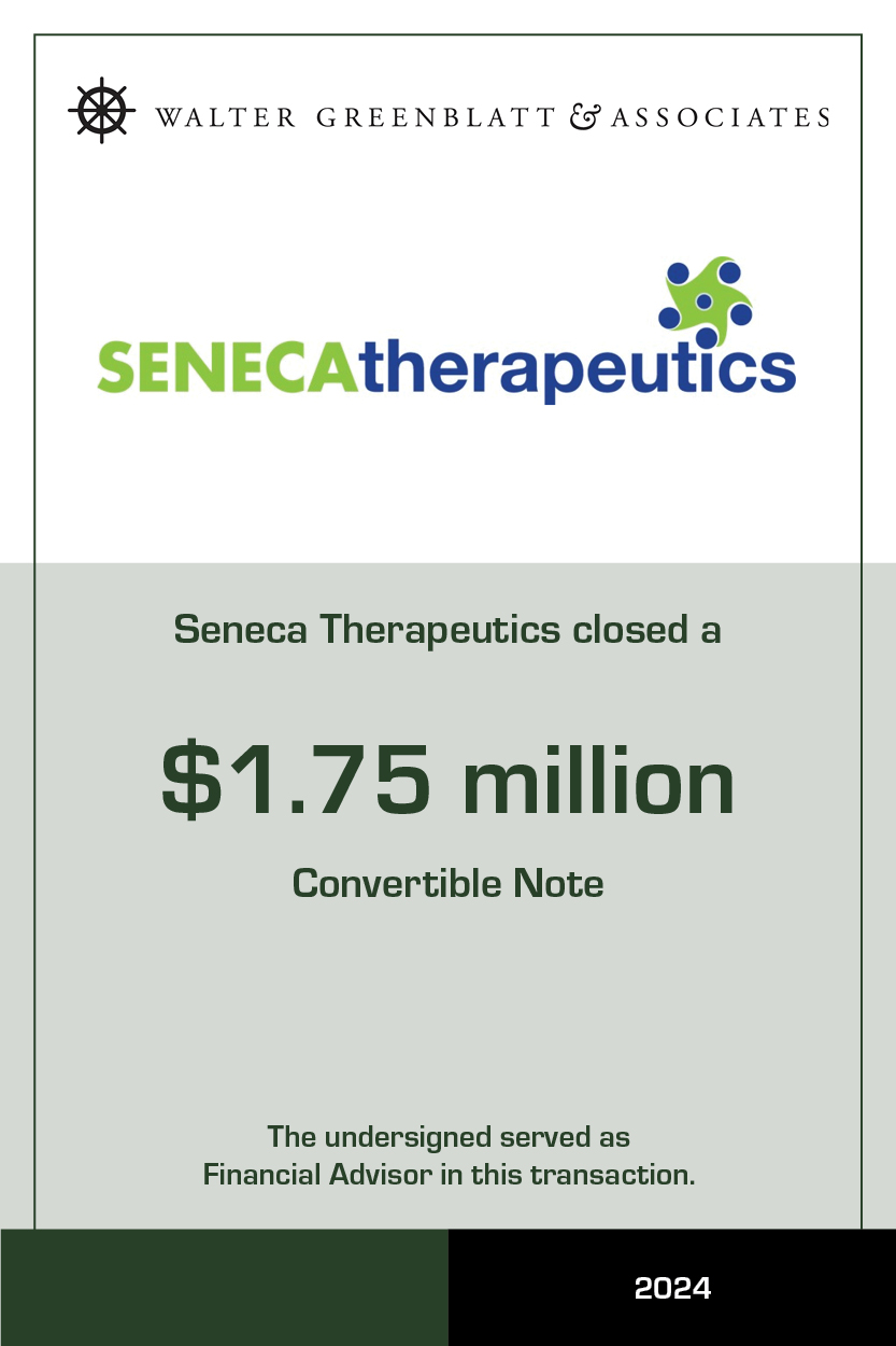WALTER GREENBLATT & ASSOCIATES enables companies to raise the early stage capital to demonstrate and build clinical and commercial traction